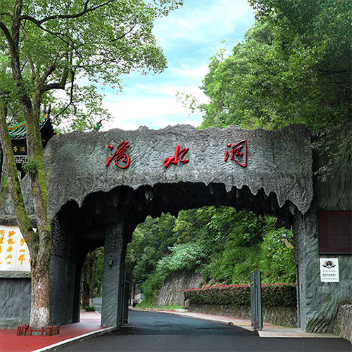 滴水洞位于毛泽东铜像以西约四公里处的峡谷中。洞中碧峰翠岭,茂林修竹,山花野草,舞蝶鸣禽,自然景观清雅绝伦。《毛氏族谱》赞之曰:“一钩流水一拳山,虎踞龙盘在此间;灵秀聚钟人莫识,石桥如锁几重关。”